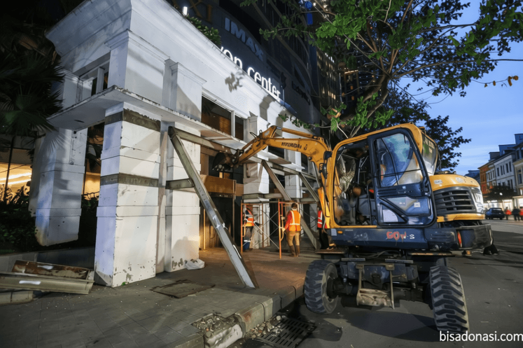 Pembongkaran fasad bekas Toko Nam di Jalan Embong Malang, Surabaya, bukan hanya tugas teknis yang diharapkan selesai dalam tiga hingga lima hari. Ini adalah momen simbolik yang menunjukkan pertemuan antara kebutuhan kota modern dan upaya menyimpan sejarah. Pemerintah Surabaya memutuskan menghancurkan struktur yang selama ini dianggap sebagai penanda, setelah dipastikan tidak termasuk bagian asli dari bangunan bersejarah.