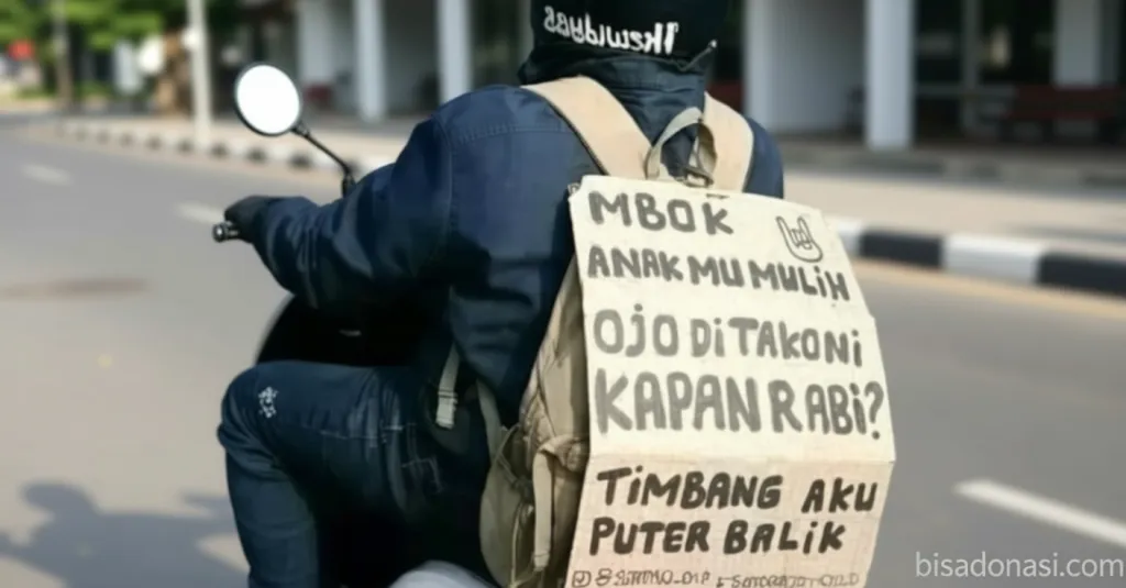 Untuk menghadirkan suasana yang lebih ringan, banyak pemudik memasang kalimat lucu di bagian belakang kendaraan mereka. Tulisan ini bisa ditemukan di motor atau mobil, dan sering dibaca oleh pengendara lain di jalan. Selain menghibur, kata-kata tersebut juga berfungsi meringankan kekakuan situasi saat arus mudik terjadi.